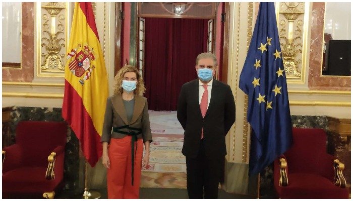 MADRID: FM Qureshi called on the President of Congress of Deputies of Spain Meritxell Batet and discussed ways to strengthen Pakistan-Spain bilateral relations in diverse fields.